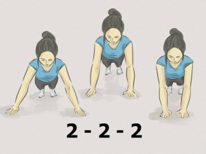 - Faça duas flexões com as mãos posicionadas normalmente.
