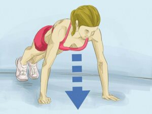 - Seu corpo deve ficar bem amparado e as costas, bem retas, sem encostar a barriga no chão.